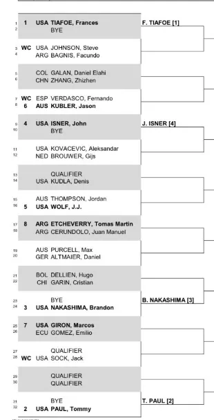 Tommy Paul als Zweitplatzierter hat ebenfalls ein BYE und wird in der zweiten Runde auf einen Qualifikanten treffen.