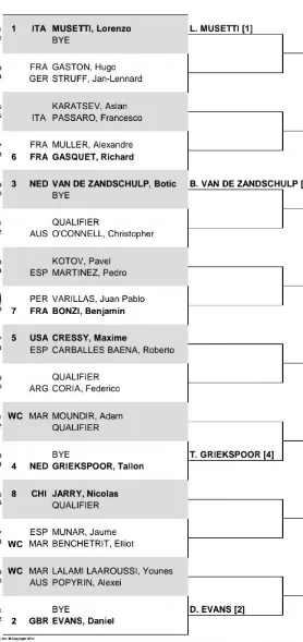 Die Auslosung ist insgesamt besser und Lorenzo Musetti ist der Topgesetzte. Er hat in der ersten Runde ein Freilos, könnte aber in der zweiten Runde auf Gaston oder Struff treffen, es ist also keine leichte Auslosung. Der an Nummer zwei gesetzte