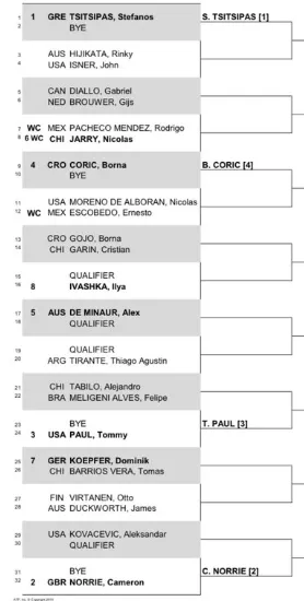 Tommy Paul ist an dritter Stelle gesetzt, während Alex de Minaur und Borna Coric ebenfalls im Spiel sind.