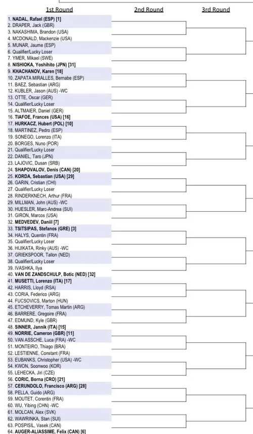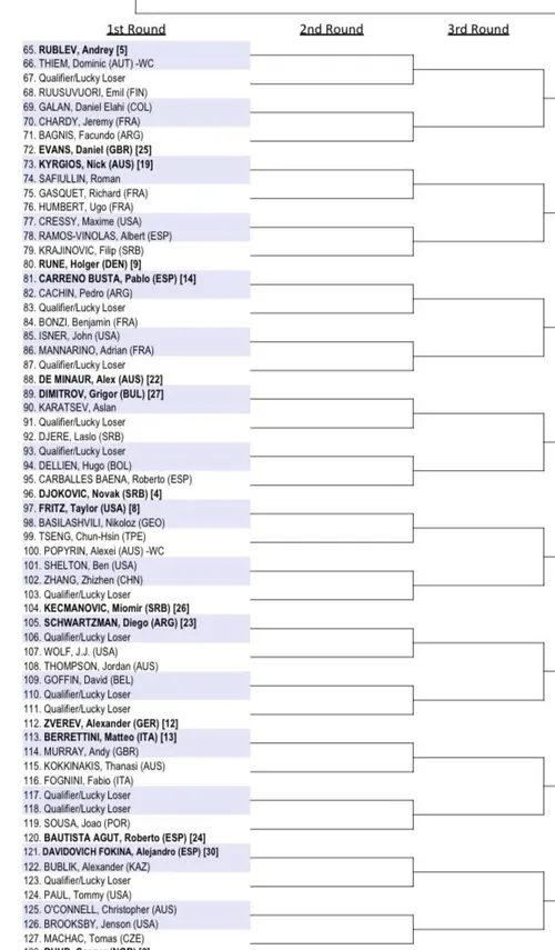 Er befindet sich außerdem im selben Viertel der Auslosung wie Nick Kyrgios, der in der dritten Runde auf Holger Rune treffen könnte. Andrey Rublev trifft in einem weiteren Blockbuster auf seinen engen Freund und ehemaligen Weltranglisten Dritten Dominic Thiem.