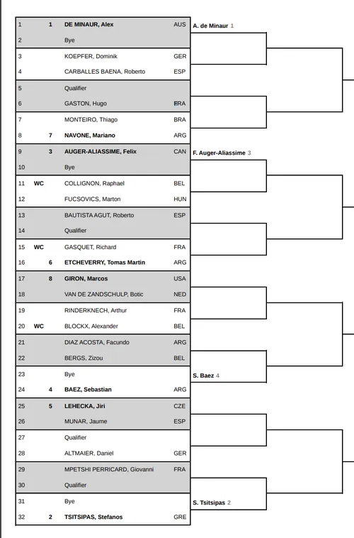 Daniel Altmaier oder einen Qualifikanten antritt. Sebastian Baez ist als Vierter gesetzt und trifft entweder auf Facundo Diaz Acosta oder Zizou Bergs.