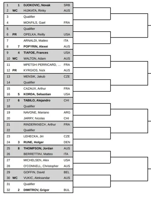 Holger Rune ist als Dritter gesetzt und trifft auf Jiri Lehecka. Zu den weiteren Begegnungen gehören Alex Michelsen gegen den Lokalmatador Christopher O'Connell.