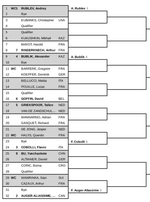 Andrey Rublev ist in Montpellier topgesetzt und trifft auf Christopher Eubanks oder einen Qualifikanten. Felix Auger-Aliassime bekommt es entweder mit Stan Wawrinka oder Arthur Cazaux zu tun. Ersterer erhält eine Wildcard für das Turnier.