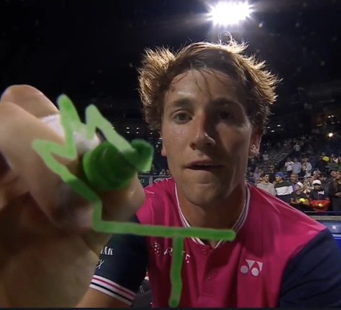 "Casper Ruud hat nach seinem Sieg über Jiri Lehecka das kanadische Ahornblatt in die Kamera gemalt. "