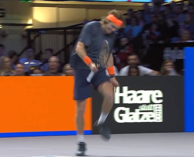 Rublev unterlag in zwei Sätzen dem späteren Sieger Sinner, der sich nach einem 2:5-Rückstand im ersten Satz zu einem 7:5 7:6(5)-Sieg kämpfte. Nach dem Zusammenbruch im ersten Satz schlug sich Rublev mit dem Schläger auf das Knie, was eine Blutung zur Folge hatte.