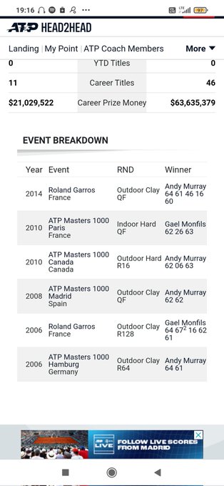 Murray und Monfils sind schon ein paar Mal in Frankreich aufeinander getroffen, haben aber insgesamt seit 2014 fast neun Jahre nicht mehr gegeneinander gespielt.