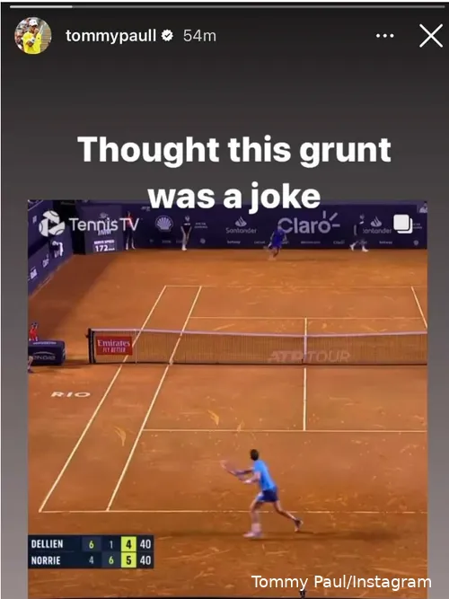 Tennis TV postete auf Instagram einen der Schlüsselmomente des Matches, nämlich einen Ballwechsel, den der Europäer gewann und der ihm den Matchball und damit den Sieg bescherte. Es war jedoch nicht die Leistung der Spieler, die Pauls Aufmerksamkeit erregte, sondern vielmehr die Grunzlaute des bolivianischen Spielers, die er als "Witz" bezeichnete.