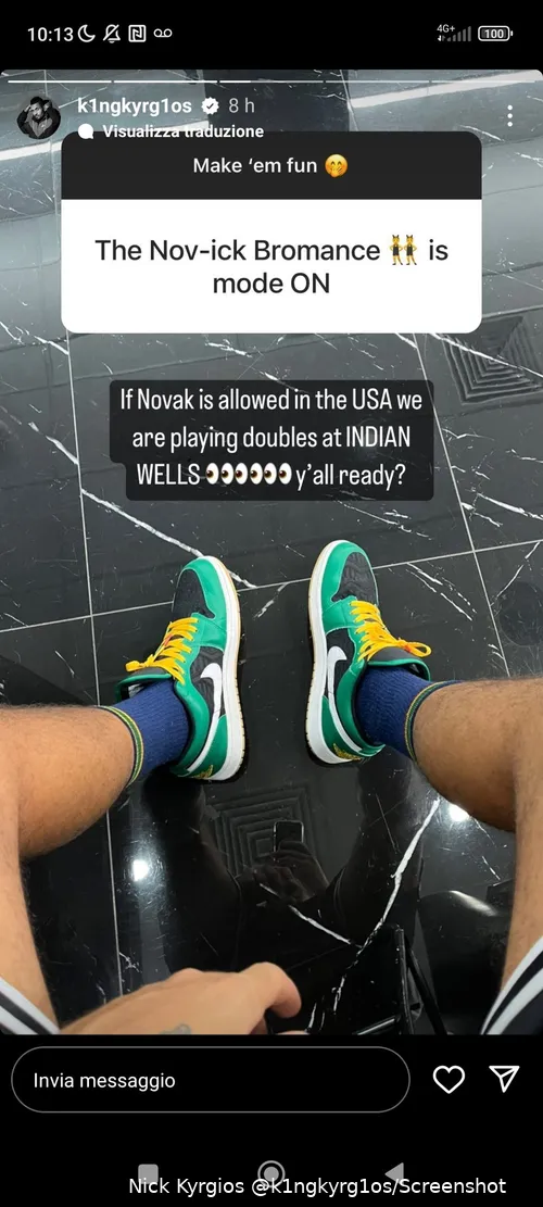 Auf Instagram verweist ein Fan auf ein mögliches Duo zwischen den beiden Spielern: "The Nov-ick Bromance is mode on." Obwohl sie noch nie zusammen Doppel gespielt haben, antwortete Kyrgios, dass wir sie nächsten Monat bei den BNP Paribas Open Indian Wells zusammen spielen sehen könnten, wenn die Nummer 1 der Welt in die USA einreisen darf: