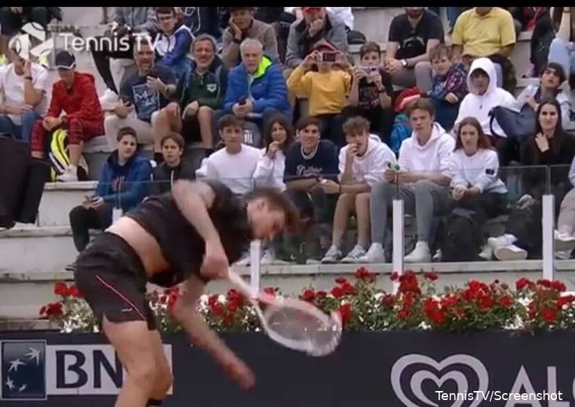 Bublik, der gegen Pedro Martinez antrat, macht sich daran, seinen Schläger zu zertrümmern, indem er ihn auf den Sandplatz schlug.