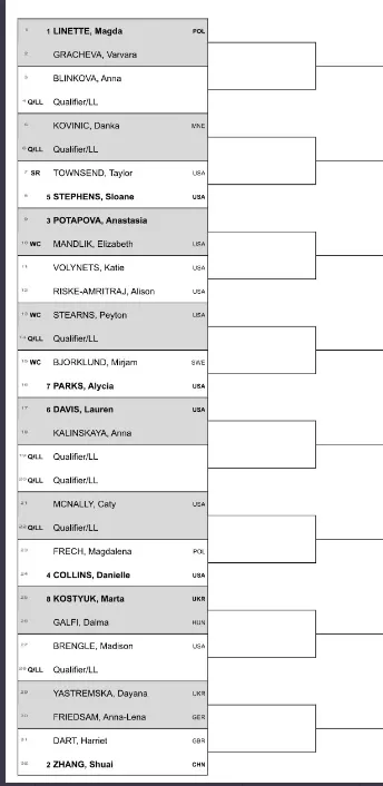Alison Riske, werden ebenfalls an der Veranstaltung teilnehmen. Die kürzlich gekrönte Linzer Meisterin Potapova ist ebenfalls Teil der Auslosung.