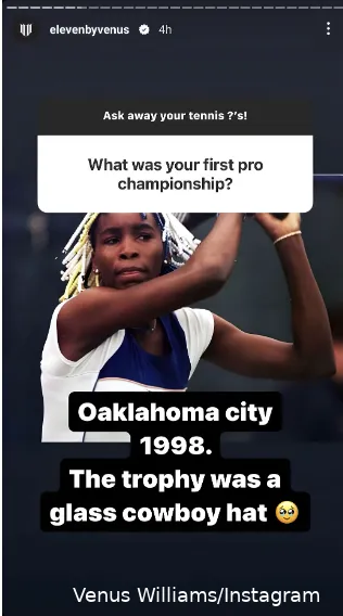 Die WTA-Ikone erinnerte auch daran, dass ihre erste Profi-Meisterschaft 1998 in Oklahoma City stattfand, wo sie einen gläsernen Cowboyhut als Trophäe erhielt.