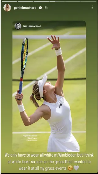 "Wir müssen nur in Wimbledon ganz in Weiß spielen, aber ich finde, dass Weiß auf dem Rasen so schön aussieht, dass ich es bei all meinen Rasenturnieren tragen wollte", schrieb Bouchard.