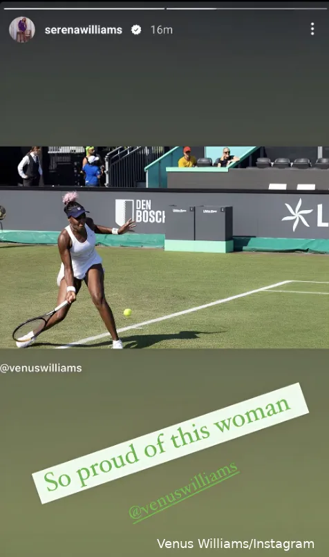 Serena Williams, die das Spiel ihrer Schwester verfolgte, zeigte nach dem Spiel auf Instagram ihre Unterstützung.