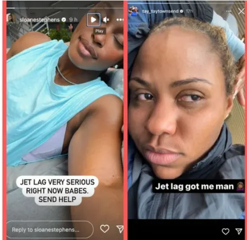 "Jetlag sehr ernst im Moment Babes. Schickt Hilfe", postete Stephens.