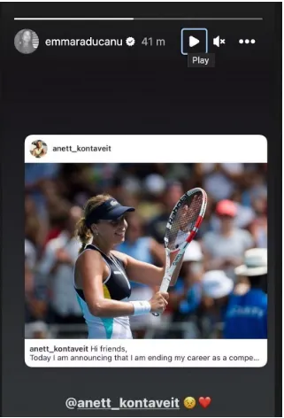 "Heute gebe ich bekannt, dass ich meine Karriere als Leistungssportlerin beende. Nach mehreren Arztbesuchen und Beratungen mit meinem medizinischen Team wurde mir mitgeteilt, dass ich eine lumbale Bandscheibendegeneration in meinem Rücken habe", schrieb Kontaveit auf Instagram.