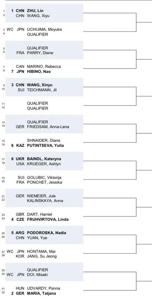 Xinyu Wang. Linda Fruhvirtova, die ebenfalls auf Harriet Dart trifft, und Jule Niemeier, die gegen Anna Kalinskaya antritt, sind ebenfalls topgesetzt.