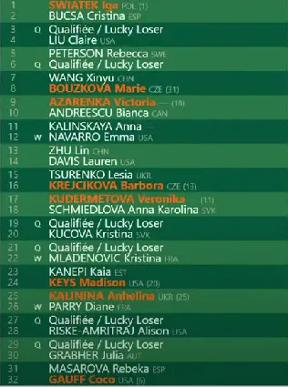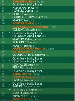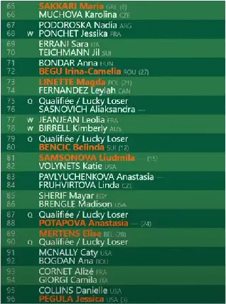 Zu den weiteren Erstrundenbegegnungen gehören die Sandplatzspezialistin Martina Trevisan gegen die zurückkehrende Elina Svitolina, Camila Giorgi - Alize Cornet und Anastasia Pavlyuchenkova, die in der Rangliste wieder nach oben klettern möchte, gegen Linda Fruhvirtova. Ebenso wie Magda Linette gegen Leylah Fernandez.